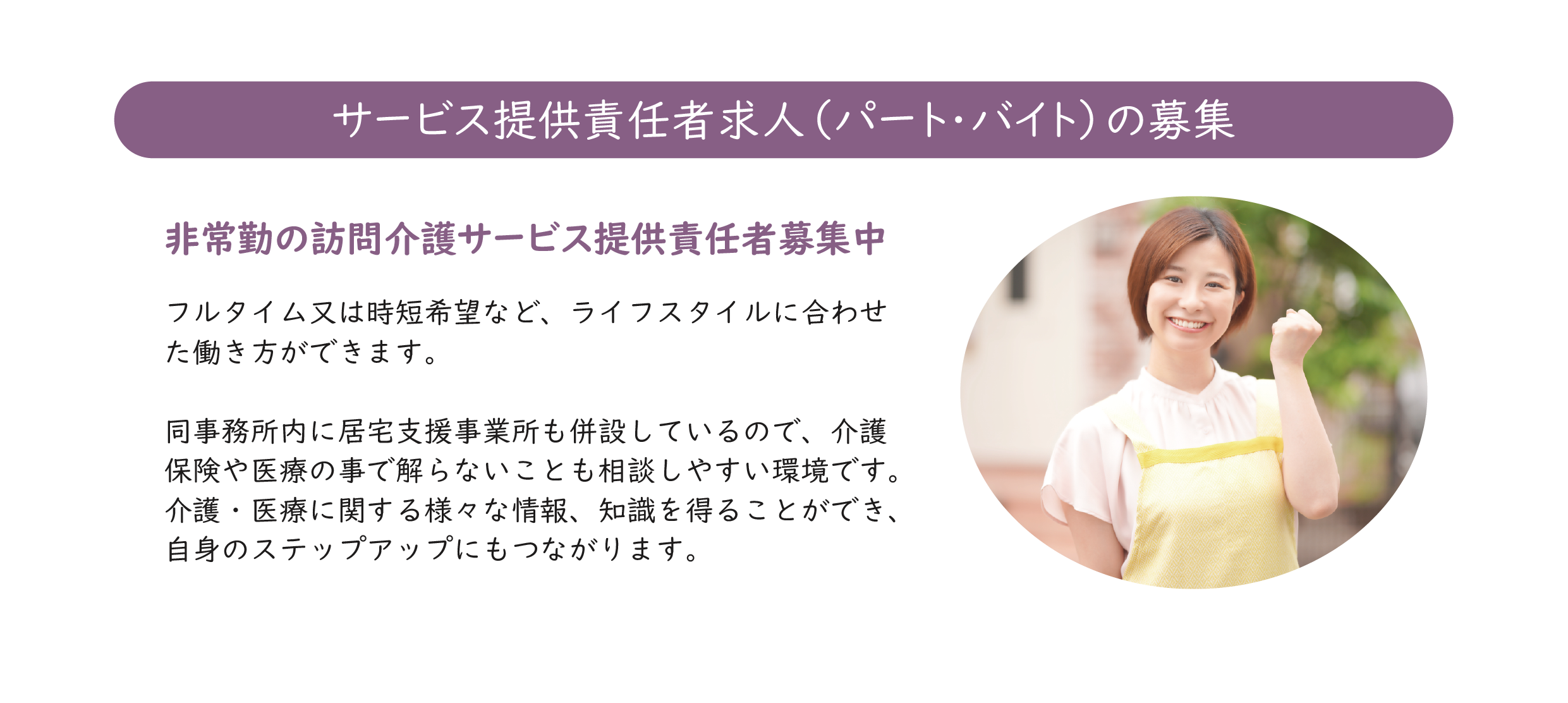 | 募集職種 | サービス提供責任者 |